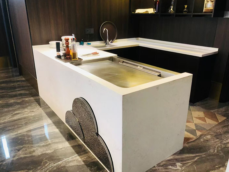 大理石就餐臺面:志銘鐵板燒設(shè)備大理石臺面圖片大全,除大理石外,可選定做巖板,玻璃臺面,木質(zhì)臺面等;
