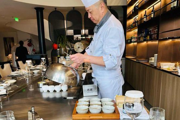 暖黃色的燈光溫柔灑落,木質裝修散發(fā)著質樸又溫馨的氣息。開放式鐵板燒區(qū)熱鬧非凡,大廚在鐵板前盡情炫技,動作行云流水。食材在鐵板上滋滋作響,肉香、菜香瞬間彌漫整個空間,勾得人直咽口水。