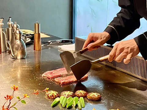 每一道佳肴皆由廚師在鐵板上匠心烹制,食材的鮮嫩與烹飪技藝精妙融合??粗巢脑阼F板上跳躍、變色,逐漸化為盤(pán)中美味,那過(guò)程簡(jiǎn)直是一場(chǎng)視覺(jué)與味覺(jué)的雙重盛宴。